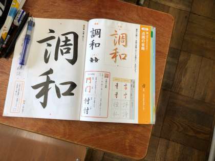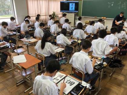 2年生国語(書写)と理科の授業の様子です。国語では,書写に取り組んでいます。行書の学習です。理科では,生物分野で脊椎動物の学習をしています。