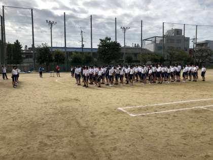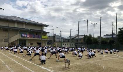2年生の部の様子です。競技開始前の様子です。準備運動をしてから,競技開始です。
