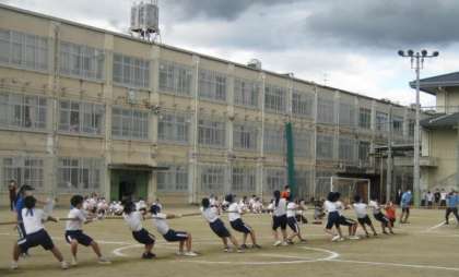 引き続き綱引きの様子です。なかなかかけ声を出せない中,うまく呼吸を合わせることをしていました。