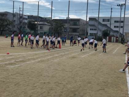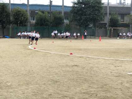 3年生学級対抗リレーの様子です。さすが,3年生です。手に汗握る熱戦でした。走力だけでなく,バトンパスで順位が入れ替わることもありました。