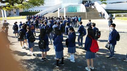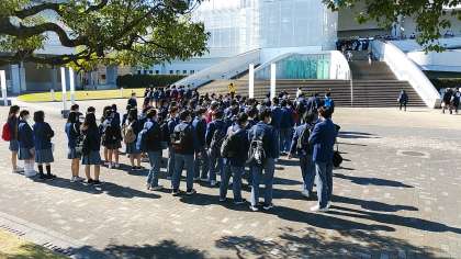 名古屋港水族館到着の様子です。現地も,素晴らしい天気です。