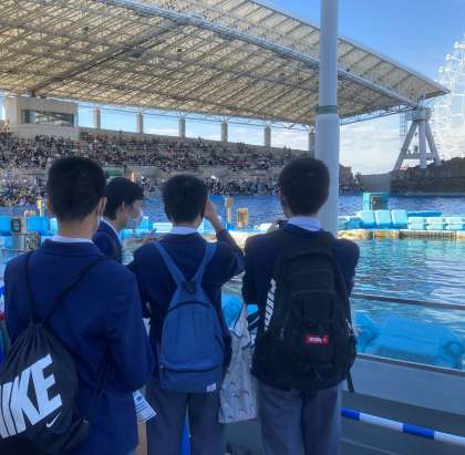 シャチのショーの観覧している様子です。初めて見る人も多いのではないでしょうか。