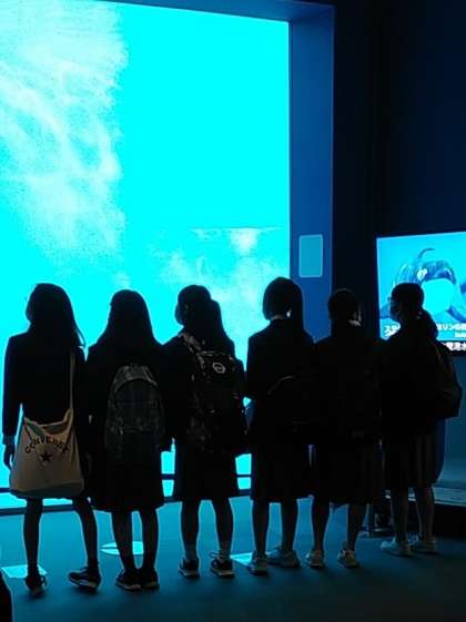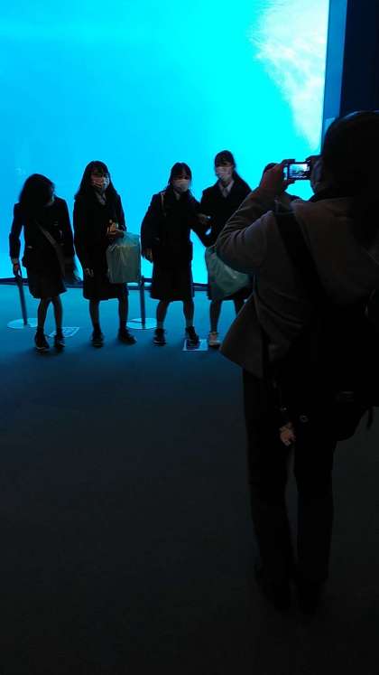 予定では,そろそろ水族館見学の終了時間です。密を避けるために学級単位で時間差で集合・移動をします。