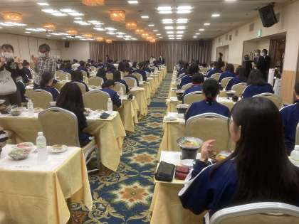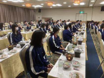 予定通りの時刻から夕食をとっています。ソーシャルディスタンスをとって,個食の形で,黙食をしています。
