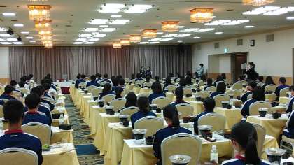 係のごちそうさまのあいさつで夕食が終了しました。次は,お待ちかねのレクリエーションです。