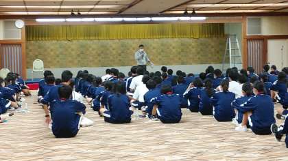 しおりを見ていますと,レクリエーション終了時刻が,8時30分となっています。とにかくスケジュール通りに行動できるのが,すばらしいなと感心します。大勢で行動するときは,一人一人が,いつも以上に意識を高く持たないとルールや時間は守ることはできません。1日目の行程は,ほぼ完璧であったのではないでしょうか。2日目もこの調子で,充実した宿泊学習になるよう「自主企画・自主運営」の精神で取り組んでください。