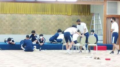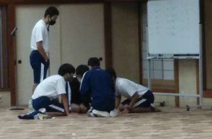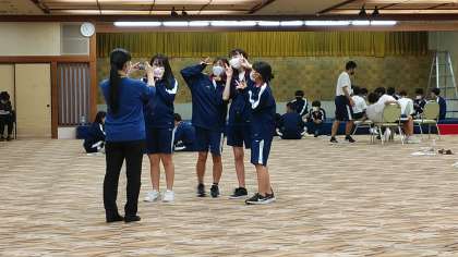 おはようございます。宿泊学習2日目の朝を迎えました。現地の天候は,晴れ,気温は21度です。写真は,昨日のレクリエーションの後の自由時間です。部屋は,個室なので友達との交流ができないので,少しの間,時間を取りました。