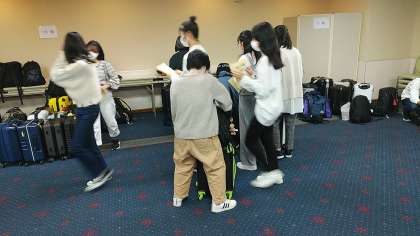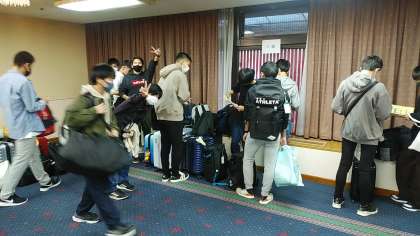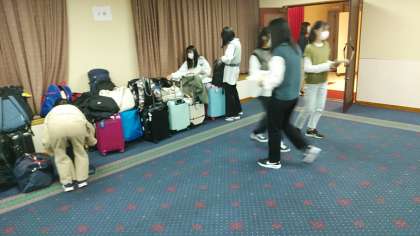 朝食前に部屋の整理,荷物を整理しています。今日は,私服で活動します。