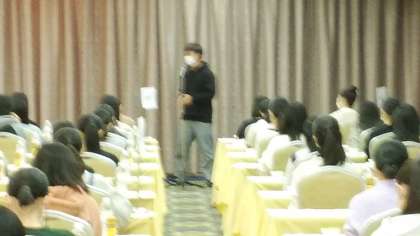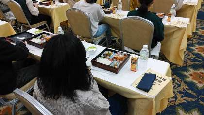 朝食会場の様子です。係のあいさつの後,朝食をいただきました。