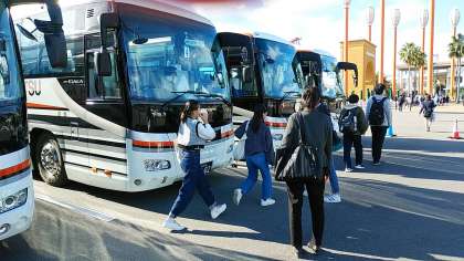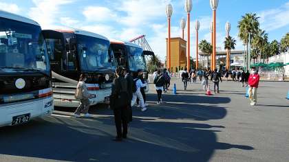 ナガシマスパーランドでの様子です。バスが到着したところです。写真の順序が若干前後しますこと,お許しください。できる限り多くの写真を載せたいと思っております。