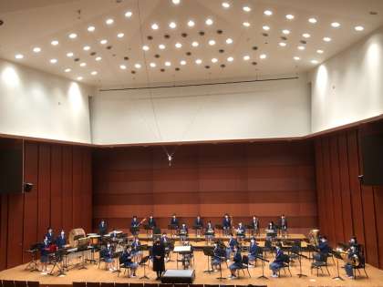 吹奏楽部が,6日(土)に堀川音楽高等学校ホールで行われた「第74回京都市中学校生徒音楽会」に出演しました。新型コロナウイルス感染拡大防止策を徹底した中で行われました。観客数も舞台に上がるメンバー数も制限されました。全部で3曲演奏したのですが,曲ごとにメンバーを一部入れ替えながら演奏しました。