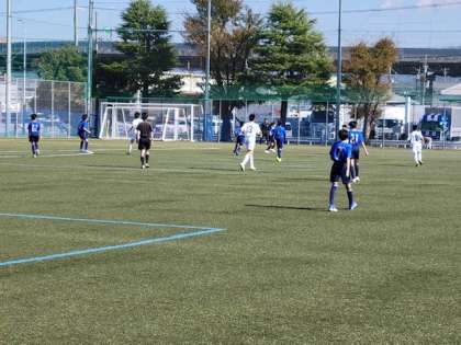 試合の様子です。秋の日差しでピッチのグリーンが鮮やかに映えています。