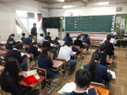 評価テスト1日目が終了しました。前回テストよりも,科目数が増え,試験範囲も広くなったので,不安や緊張がある人もいるかもしれません。大丈夫です。日頃の学習をしっかり見直して,できるところからやりましょう。周りの仲間と比べるのではなく,前回の自分を越えていくことを目標にし,前回の反省を生かすことで,やるべきことや今回の目標を定めることができると思います。