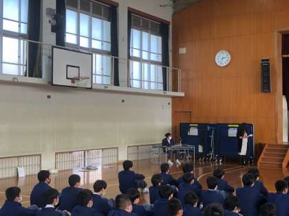 昨日の1年生に続き,2年生が合唱演奏発表会に向けてリハーサルを行いました。文化委員が,司会進行を務めました。