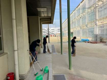 昨日に引き続き,式練習,美化活動をしています。美化活動では,机椅子のネームシールはがしや校舎外の掃除をしています。3年生の使用した机椅子を新1年生が使用します。3年間使ってきましたが,とてもきれいに丁寧に使っています。感謝の意を込めて,環境整備をしていました。