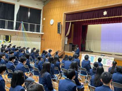 この後,3年生は,体育館を後にして,1・2年生に見送られながら,教室に戻りました。最後に,生徒会長が,1・2年生に向けて,3年生を送る会の成功は,1・2年生全員の力であることを感謝するあいさつをしてくれました。