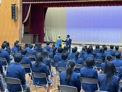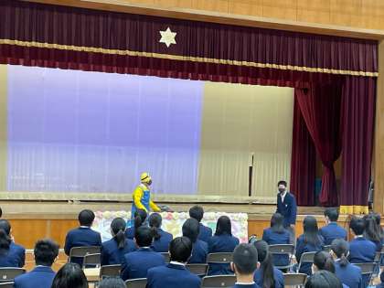 生徒会本部による終わりの言葉です。あいさつのあと,サプライズで漫才をしてくれました。