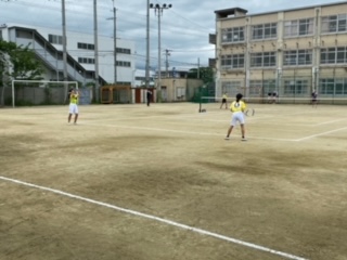 4月28日(祝)西院中学校の会場で女子ソフトテニスの個人戦が行われました。途中雨に降られ延期となりましたが,試合に出場した選手たちは生き生きとプレーしていました。