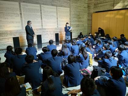 館長さんの話を聞き,黙祷をして,平和への誓いをしました。
