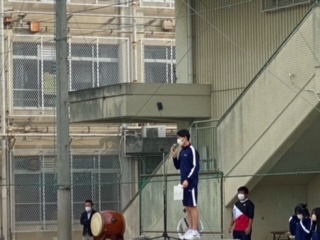 本日体育大会の予行が行われました。写真は体育委員長・団長・生徒会です。