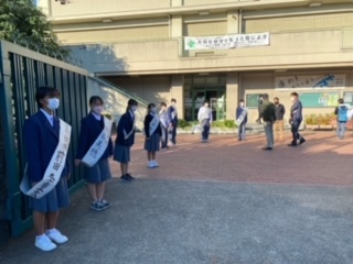 本日より、生徒会選挙運動が開始されました。立候補者が校門で、大きな声で挨拶とともに清き一票を入れていただくように活動をしていました。