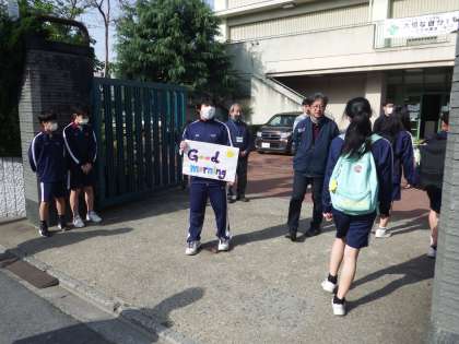 新学期が始まり、委員会の活動も始まってます。朝、生活委員会と生徒会本部の生徒たちが、「あいさつ運動」をしています。朝からしっかりとあいさつすると気持ちが良いですね。