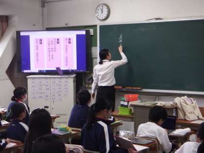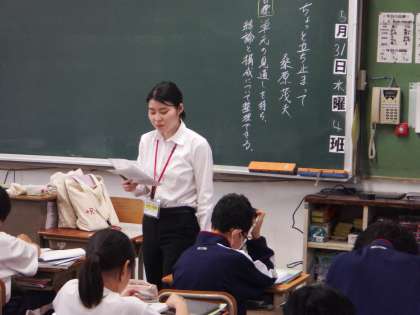 今週から教育実習生の授業が本格的に始まっています。今日は、2名の教育実習生のうち1名が初めての授業でした。緊張はしていたと思いますが、堂々と授業を行っていました。たくさんのことを経験、吸収してください。