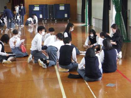 本日6限目に、明日から始まるチャレンジ体験の前日指導を体育館で行いました。校長先生からのお話の後、各事業所の担当の先生方から細かな注意があり、最後に学年主任の先生からお話がありました。明日からの4日間は、とても貴重な体験となります。しっかりと体験してきて、一回りも二回りも成長して帰ってきてください。期待しています。