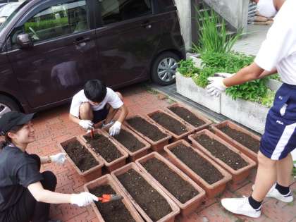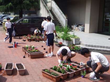 2年生は、昨日からチャレンジ体験が始まっています。本日、お休みの事業所があり、お休みの2年生の生徒たちと地域の方が、学校に来て、花の植え替えを手伝ってくれました。ありがとうございました。