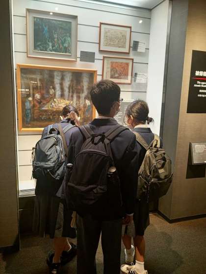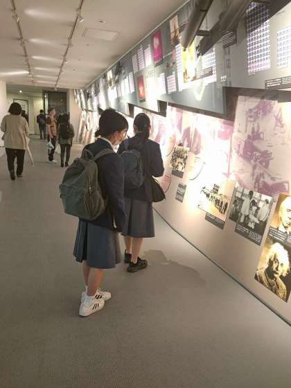 雨が降っていますが、全体でセレモニーをするために、これから平和公園に移動します。資料館は衝撃です!