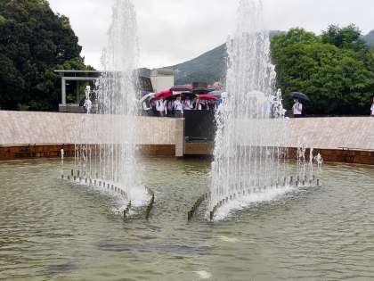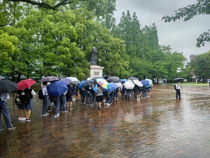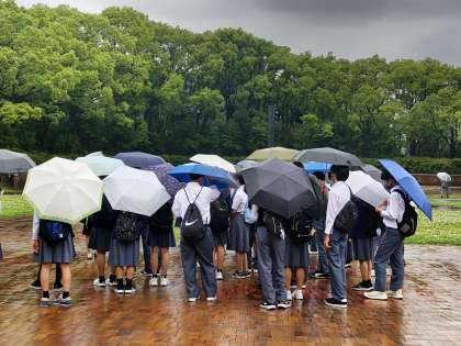 平和公園内、説明をガイドさんから聞きながら、祈念像前へ