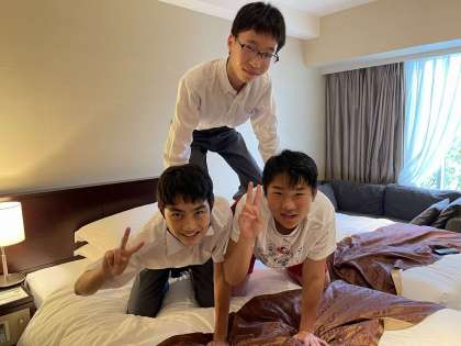 遅くなりましたが、無事ホテルに到着し、くつろいでます。トイレはどこですか?って。