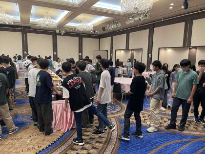 朝食のバイキングの様子です。朝から大行列ができています。