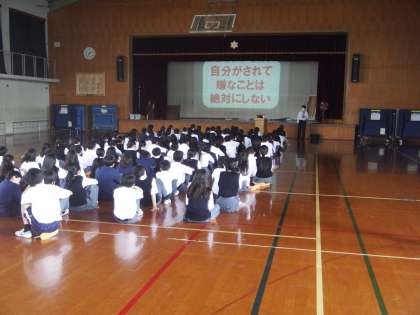 本日6限、1年生を対象に非行防止教室を実施しました。京都市教育委員会から講師の先生をお招きし、「犯罪」「いじめ」「SNSトラブル」「薬物」等についてお話しいただきました。今日学んだことを、今後の学校生活にしっかりと生かしていってほしいと思います。