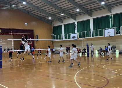 本日、男子バレーボール部の夏季大会1回戦が行われました。順調ち勝つことができました。明日は、強豪との対戦ですが、今日の勢いのままで、相手を圧倒し、勝ちましょう。