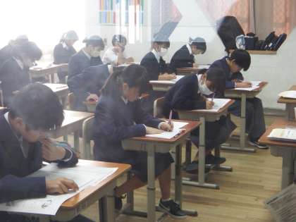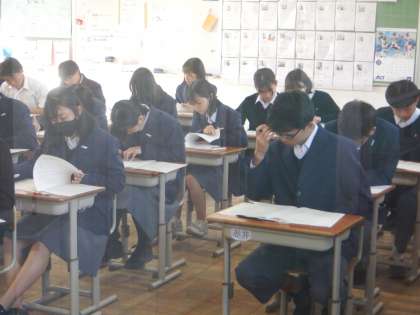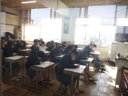 本日、第3回定期テスト2日目です。二限目の様子ですが、みんな真剣な表情でテストに取り組んでいます。今日も良い天気ですが、朝晩は冷え込みます。体調に気をつけて、明日もう1日頑張ってください。
