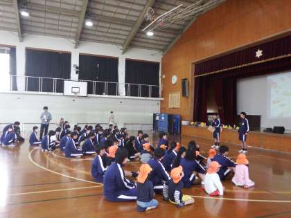11月30日(木)午前 本校体育館で、「西院ホスピタリティー」を行いました。「西院ホスピタリティー」とは、近隣の保育園や幼稚園の子どもたちを招き、おもてなしをする取組です。当日、西院幼稚園をはじめ西院保育園、向上社保育園、清明保育園、妙覚保育園が参加してくれました。園児も楽しんでくれていましたが、それ以上に3年生が楽しんでいたように見えました。参加してくださった保育園、幼稚園の皆様、ありがとうございました。