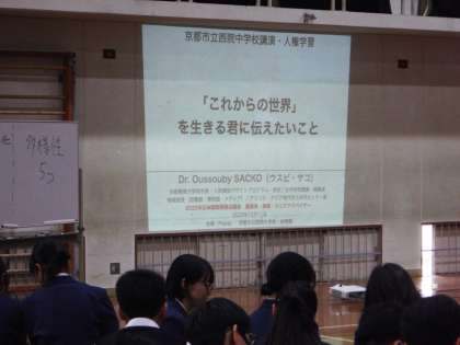 本日、午後から2年生は体育館で、人権講演会を行いました。講師は、京都精華大学前学長で、テレビにも良く出ておられる ウスビ・サコ 様です。『「これからの世界」を生きる君に伝えたいこと』というテーマでお話をしていただきました。とてもお話が上手く、あっという間の2時間となりました。ウスビ・サコ 様、お忙しい中、ありがとうございました。