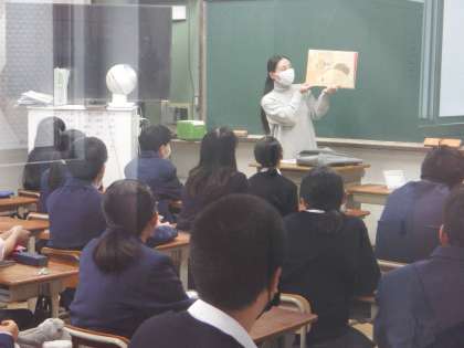 本日、地域ボランティアの「読み聞かせサークルもぐもぐ」のみなさんに来ていただきました。本日は1年生が対象でした。1年生も今年度2度目の読み聞かせになりました。今回も生徒の皆さんは読み手の手元のほんを見ながら集中して聞き入っていました。「読み聞かせサークルもぐもぐ」のみなさん、ありがとうございました。
