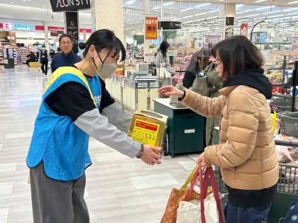 1月11日(木)にイオン 黄色いレシートの取組PRに本部役員の方が行ってくださいました。今回もたくさんの方が西院中学校のBOXにレシートを入れてくださりました。ご協力ありがとうございました。毎月11日ですので、今後ともご協力よろしくお願いします。なお、専門店での買い物も対象となります。