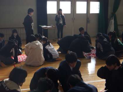 本日、6限目に体育館で1年生は小倉西院杯かるた大会を実施しました。みんな真剣に読み手の声に集中しながら「かるた」をにらみつけていました。まさしく真剣勝負です!