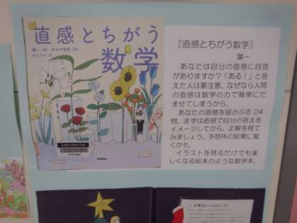 校舎の1階に、学校司書の田中先生が、図書館の本の紹介を展示していただいています。面白そうな本の紹介が載っていました。ぜひ、図書館に行ってみてください。