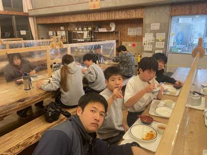 1組の宿泊学習の様子です。晩ご飯を食べているようです。みんな元気そうです。