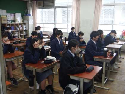 本日、地域ボランティアの「読み聞かせサークルもぐもぐ」のみなさんに来ていただきました。本日は3年生が対象でした。3年生にとっては、最後の読み聞かせとなりました。生徒の皆さんは、本日も読み手の手元の本を見ながら集中して聞き入っていました。「読み聞かせサークルもぐもぐ」のみなさん、小学校から9年間お世話になり、ありがとうございました。