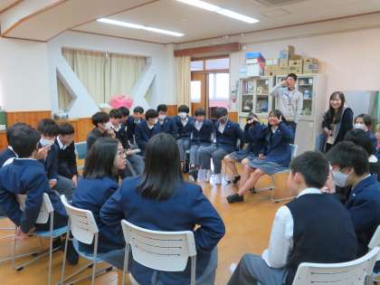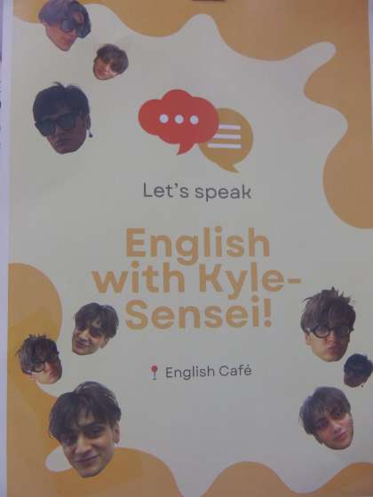 今日の昼休み、「English Cafe」を行いました。ALTのカイル先生にいろいろと質問をし、交流しました。すべて英語での時間が流れていきました。とても充実した時間でした。