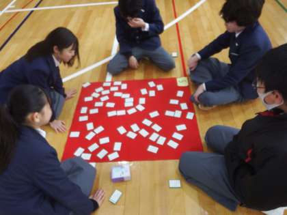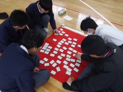 昨日公立中期選抜も終わり、ほっと一息つけたので、本日1,2限目に体育館で3年生は小倉西院杯かるた大会を実施しました。3年生のみんなも真剣に読み手の声に集中しながら「かるた」をにらみつけていました。まさしく3年生も真剣勝負でした!