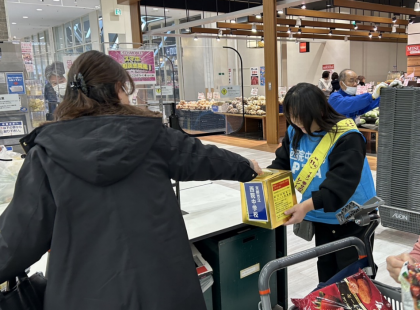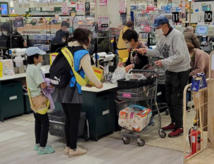 3月11日(月)にイオン 黄色いレシートの取組PRに本部役員の方が行ってくださいました。今年度最後の取組でしたが、たくさんの方が西院中学校のBOXにレシートを入れてくださりました。ご協力ありがとうございました。毎月11日ですので、今後ともご協力よろしくお願いします。なお、専門店での買い物も対象となります。