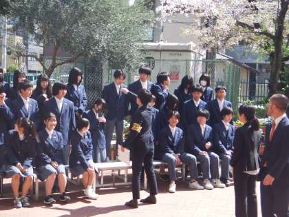 お天気もよく、校門での撮影は、まぶしいほどでした。みんな笑顔で撮影してもらいました。