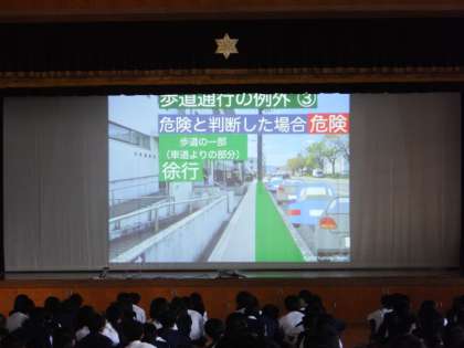 生徒たちは中学生になって自転車に乗って出かけることも多くなり、また行動範囲も広くなります。だからこそ、しっかりと“自分を守る”“交通ルールとマナーを守る”そして“他の人を思いやる”力を身につけていく必要があります。