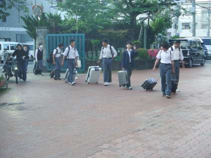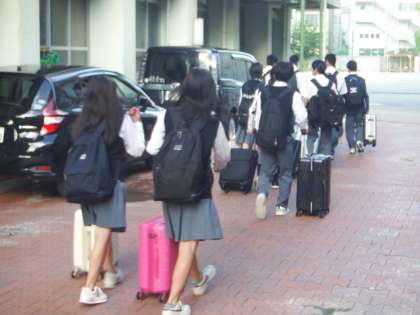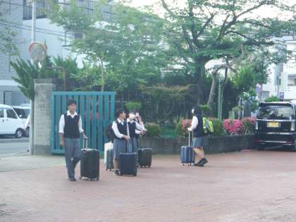 本日より、3年生は修学旅行に行きます。昨日と違い、晴天の中、出発しました。